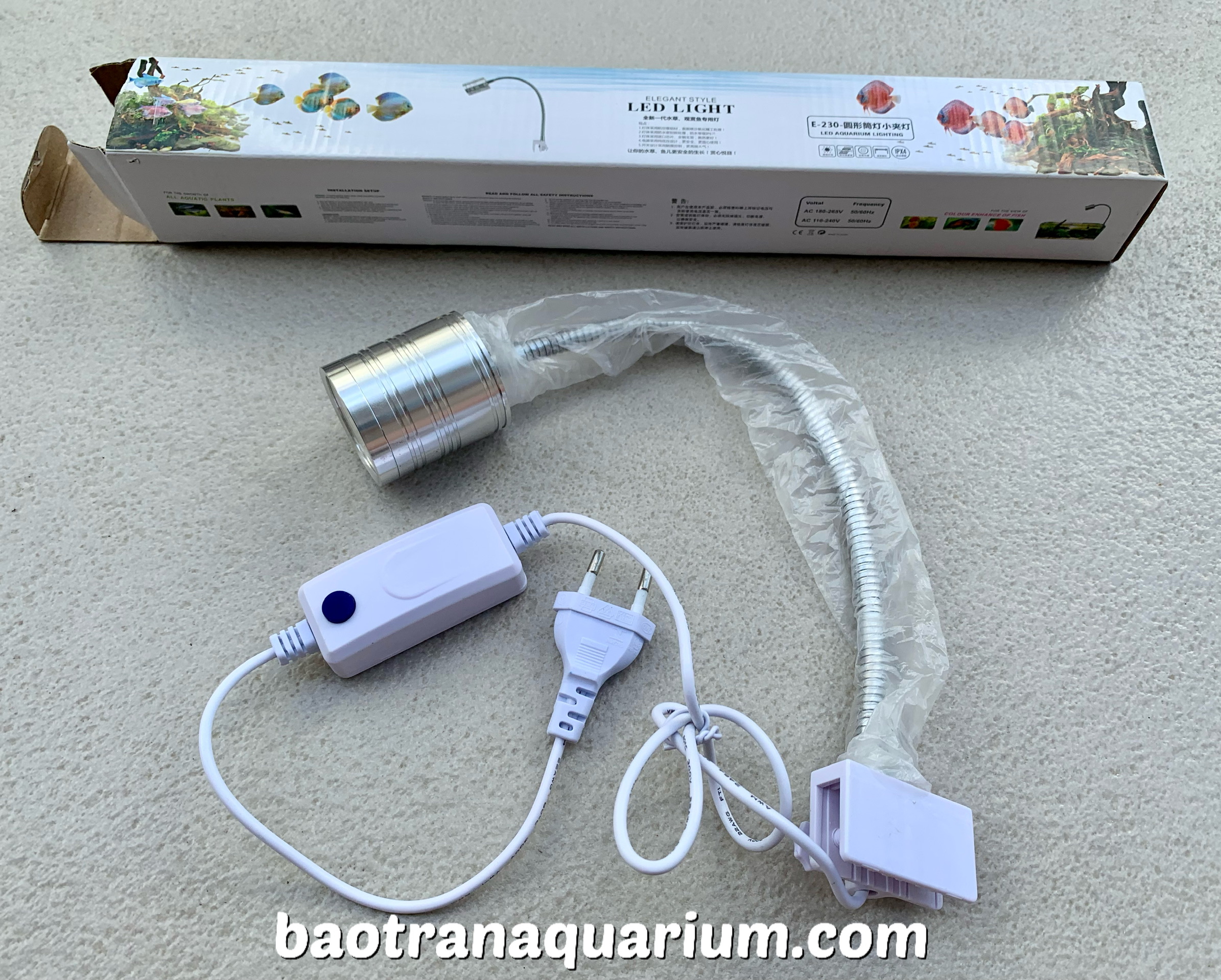 Đèn led rọi Biotop E230 dùng kẹp vào thành hồ. Rọi thành tia như ánh mặt trời rất thích hợp cho hồ trang