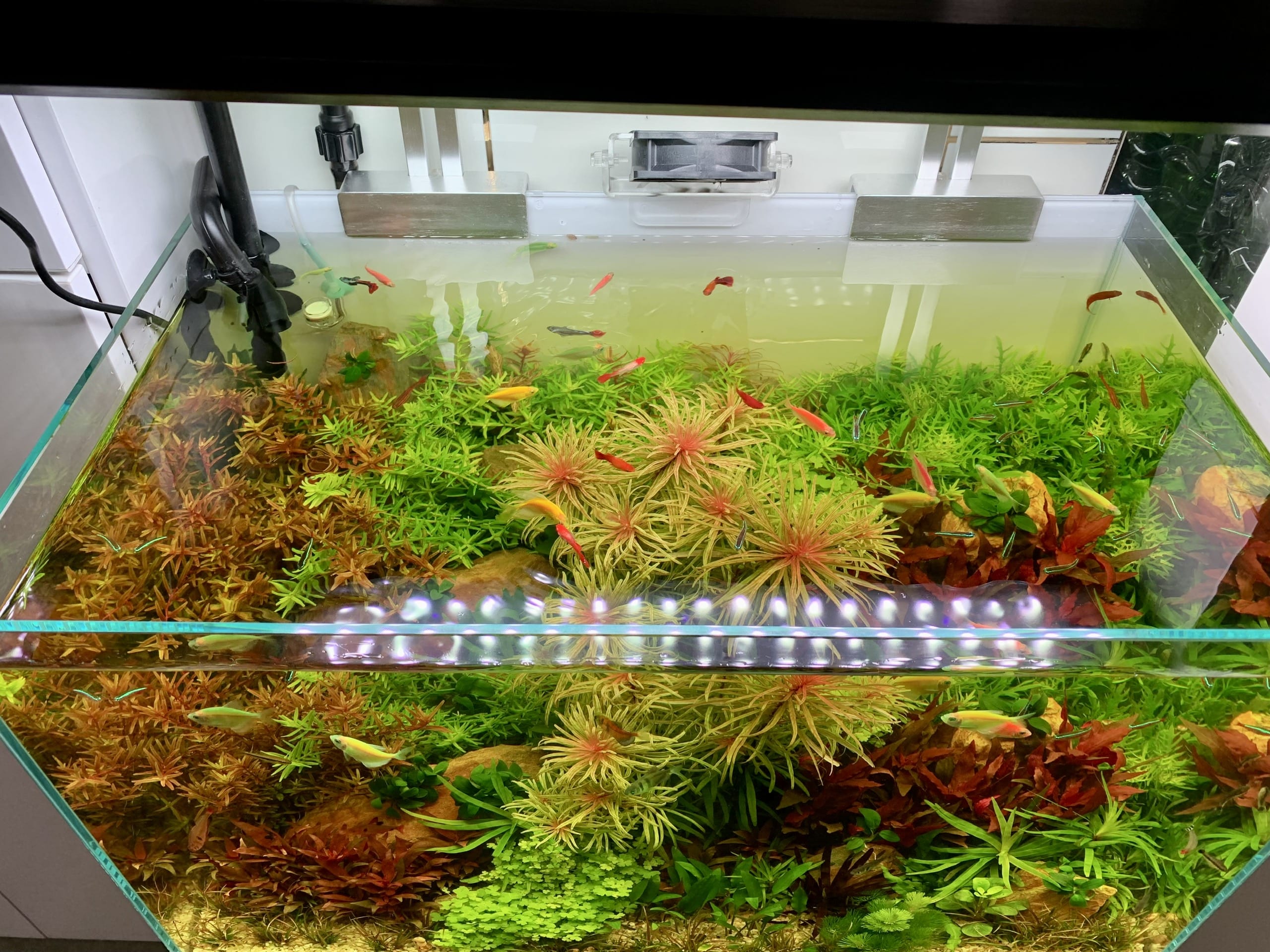 - Tặng 30 cá neon vua, 1 chai vi sinh làm trong nước, thức ăn, ống thay nước