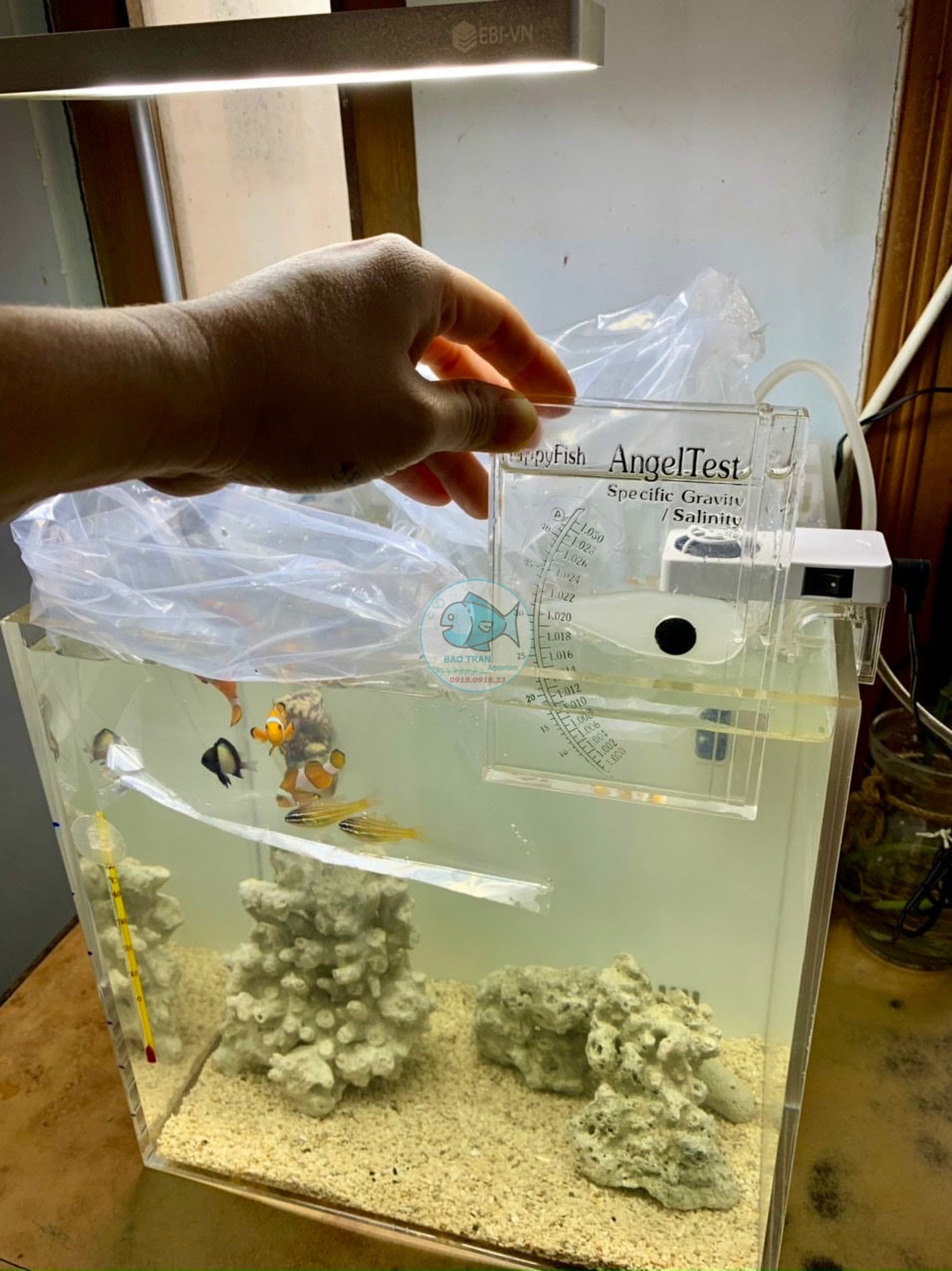 tiên thiết lập hồ cá hoặc khi thực hiện thay nước định kỳ. Theo dõi độ mặn của nước biển nhân tạo là rất