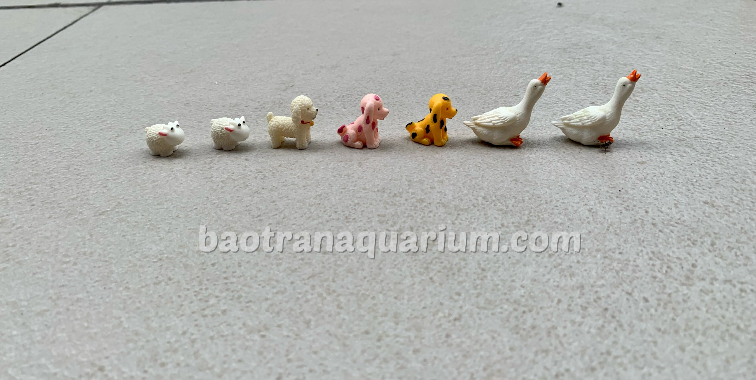 Các vật dùng làm trang trí hồ cá cảnh: vịt, cừu, chó con với kích thước rất nhỏ 1-